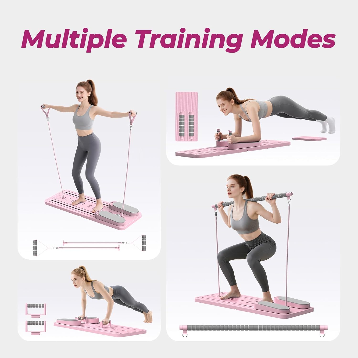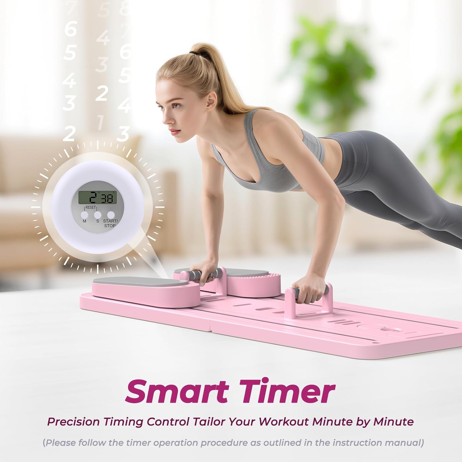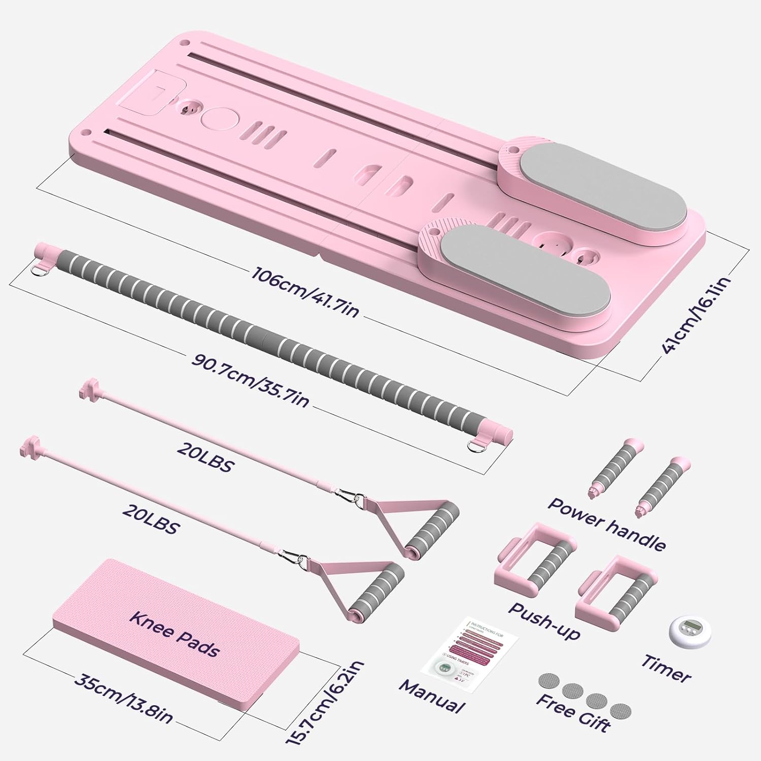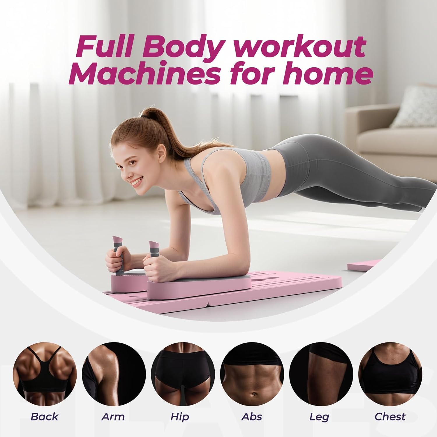 多功能普拉提板、普拉提塑身機套裝、7 合 1 可折疊普拉提塑身機,適合家庭鍛煉,帶計時器、手機支架、俯臥撐桿、腹部板、容量為 330 磅的便攜式套裝