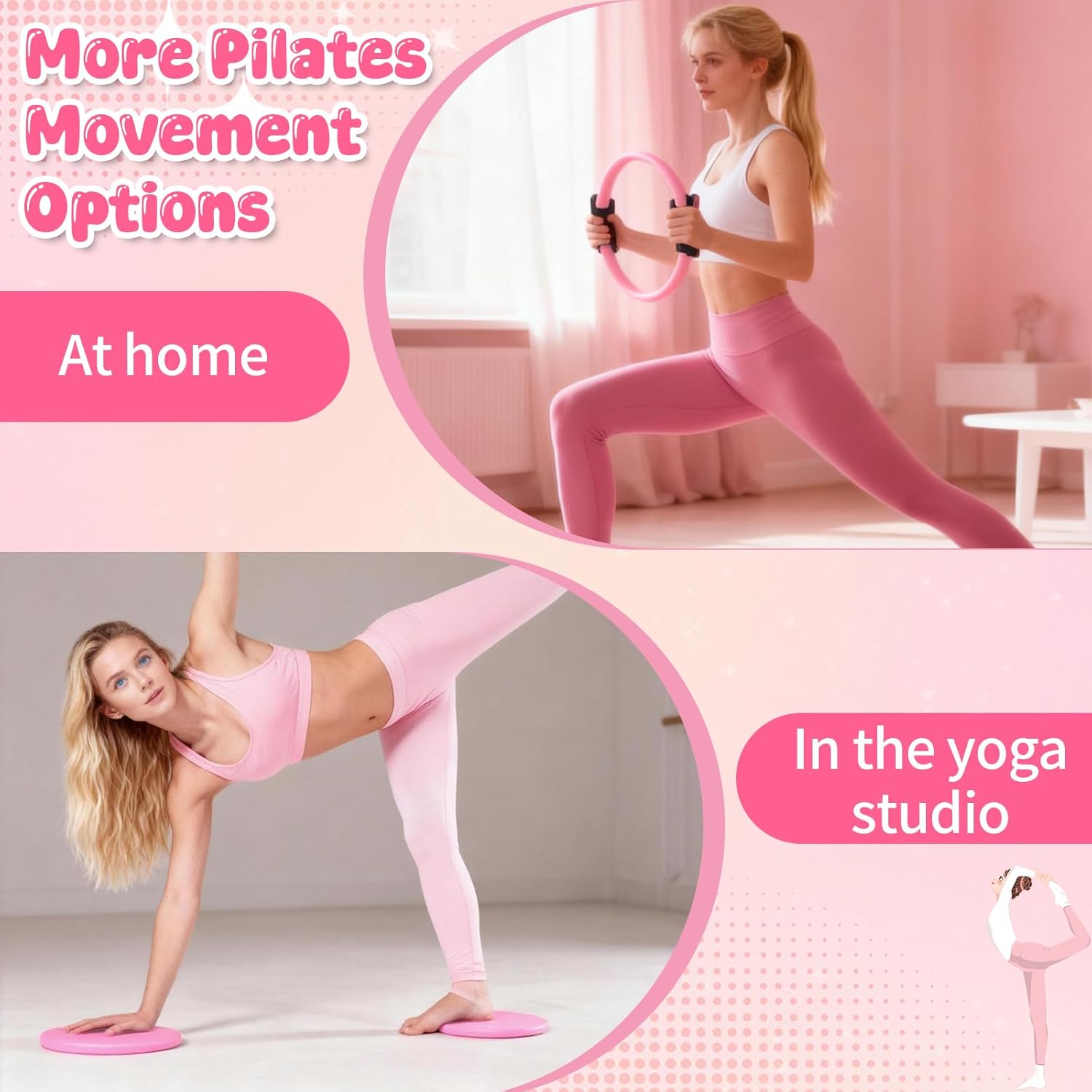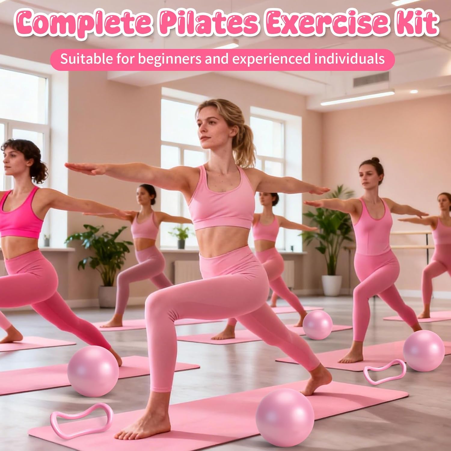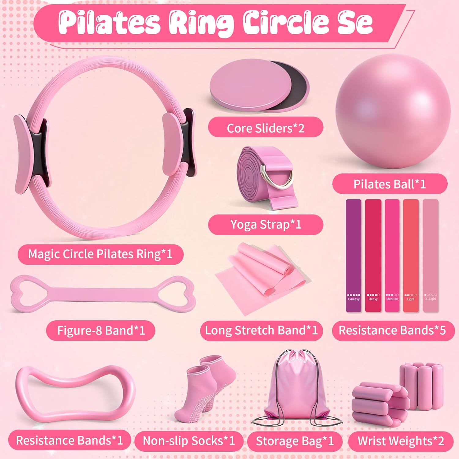 家用鍛鍊普拉提裝備套裝 – 18 件套 – 14 英寸女士普拉提環和球套裝、普拉提/瑜伽配件套裝,帶手腕重量、阻力帶、核心滑塊、瑜伽帶、襪子、包