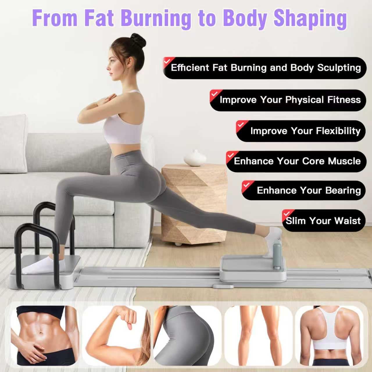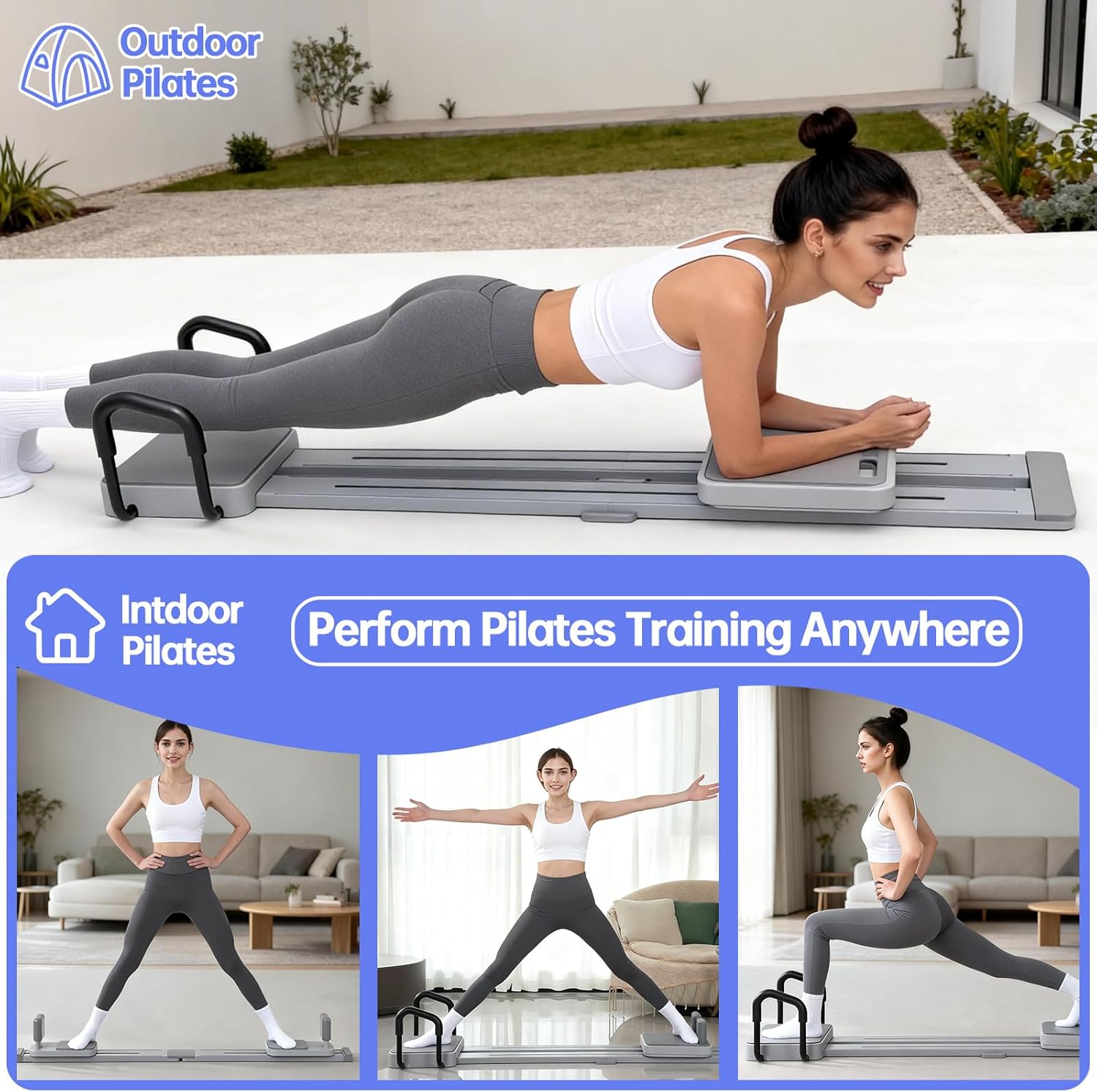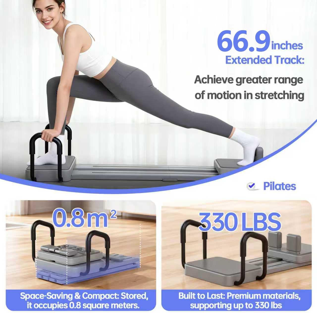 帶有 66.9 英寸加長導軌的普拉提塑身機、帶有 3 雙瑜伽襪的便攜式普拉提塑身機、快速組裝、適合家庭鍛煉的普拉提滑雪機