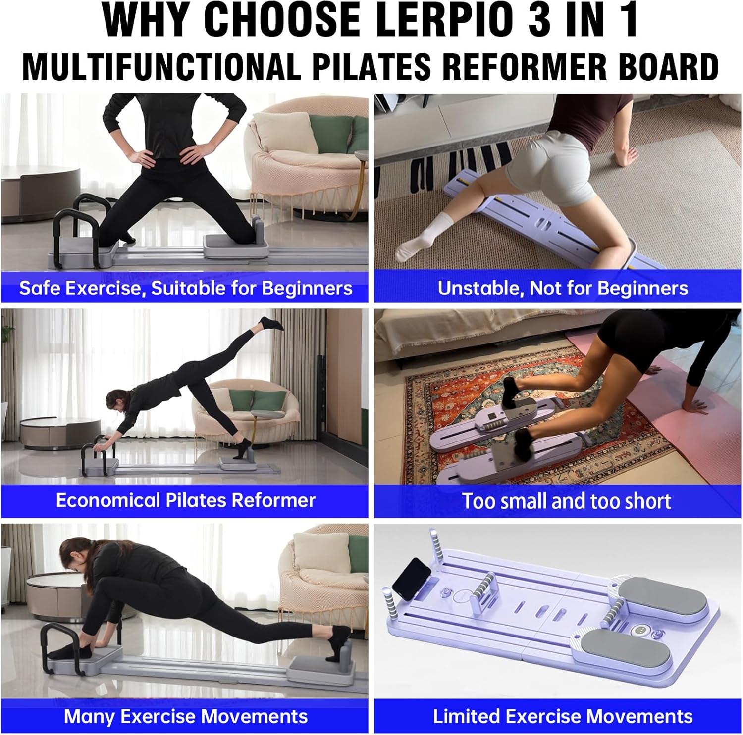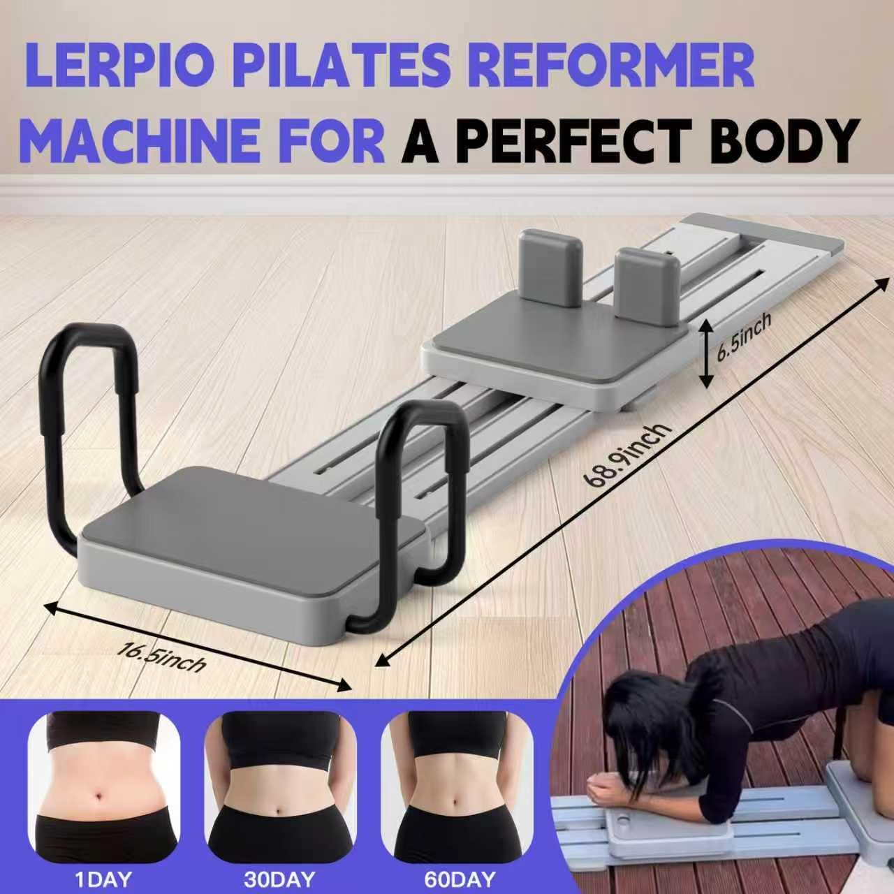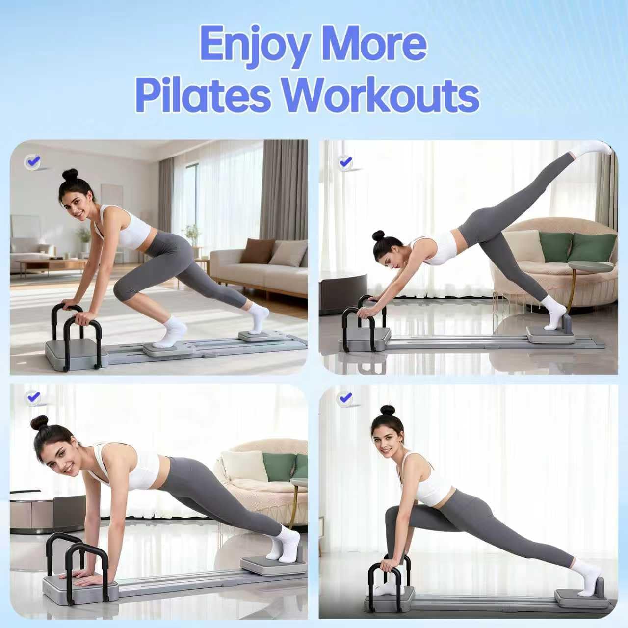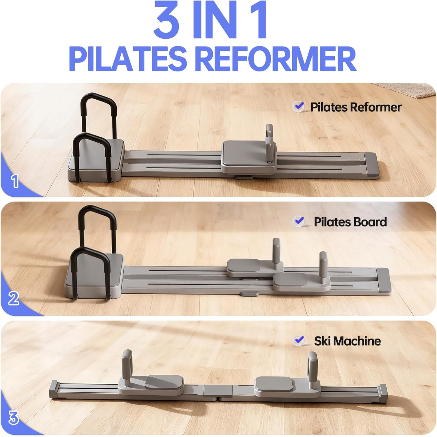 帶有 66.9 英寸加長導軌的普拉提塑身機、帶有 3 雙瑜伽襪的便攜式普拉提塑身機、快速組裝、適合家庭鍛煉的普拉提滑雪機