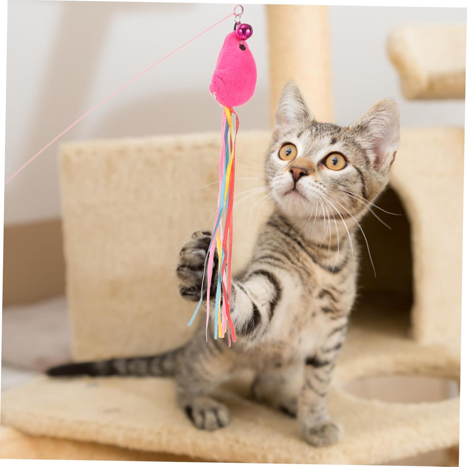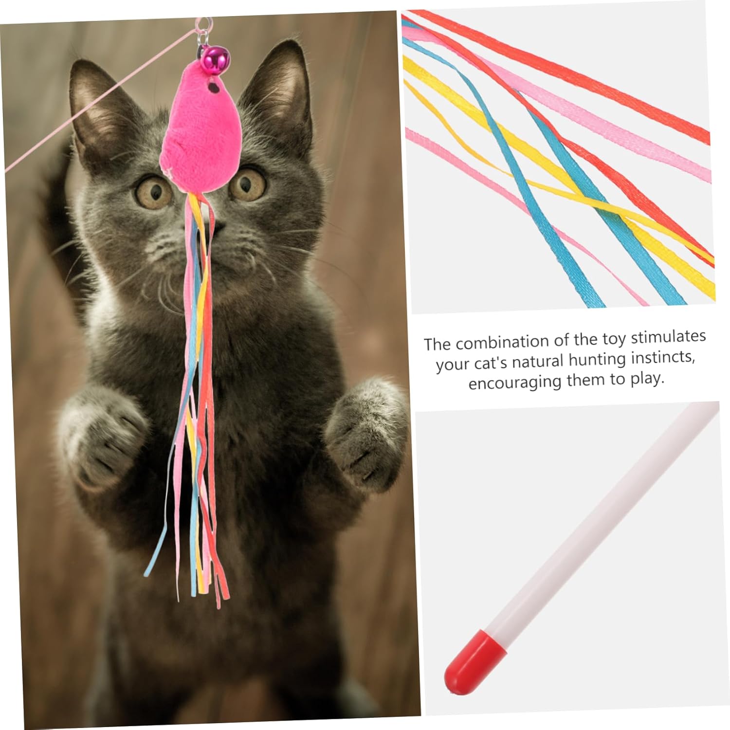 與老鼠互動的逗貓棒,有趣的貓室內游戲,多功能逗貓棒,吸引人的自玩設計