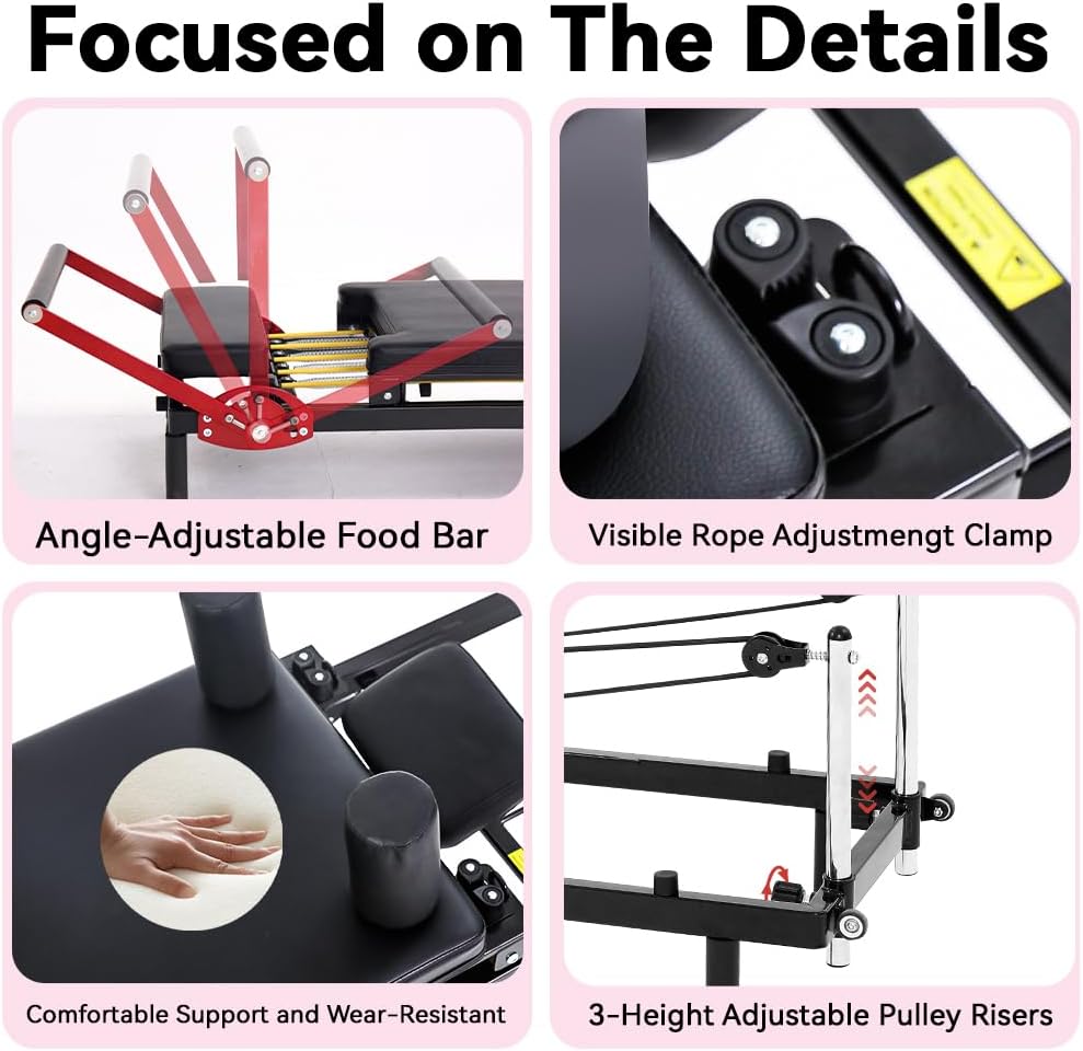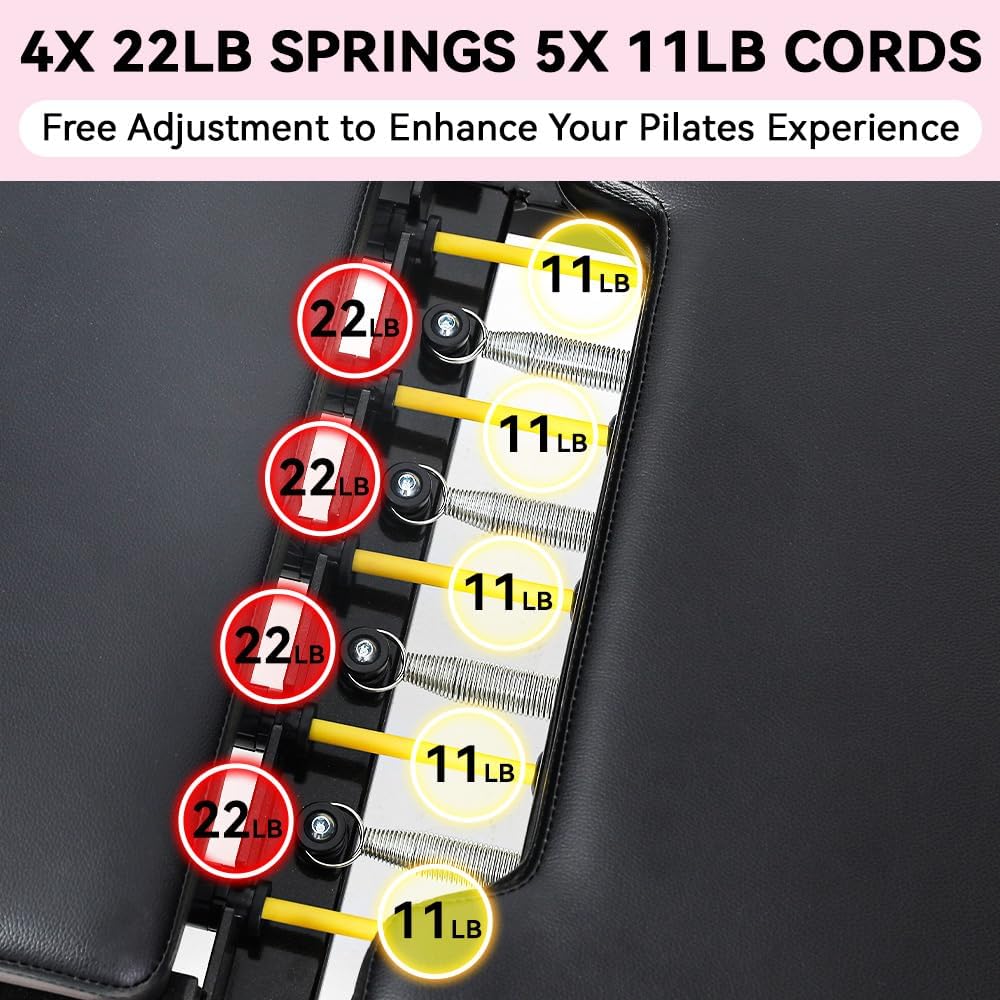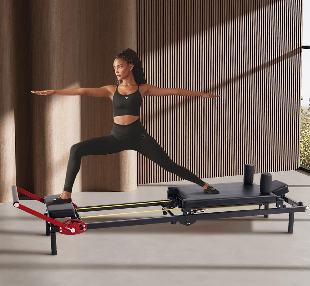 適用於家庭工作室的普拉提塑身機,快速組裝可折疊普拉提塑身機,承重能力達 330 磅,阻力可調的普拉提機