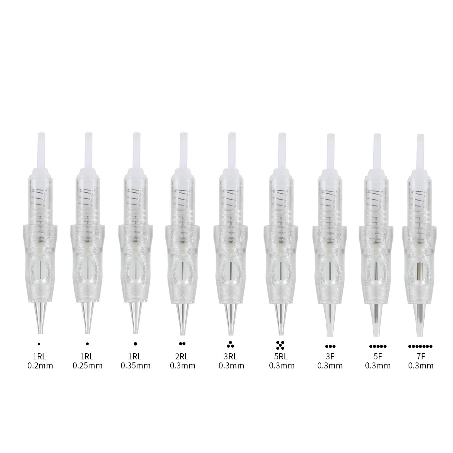 10 件裝 M3 針筒,帶安全膜 – 兼容 Mellie Microblading 出品的 Intelli、Lady、Meraki 和 Arrow 永久化妝機(針頭,1RL .20mm)