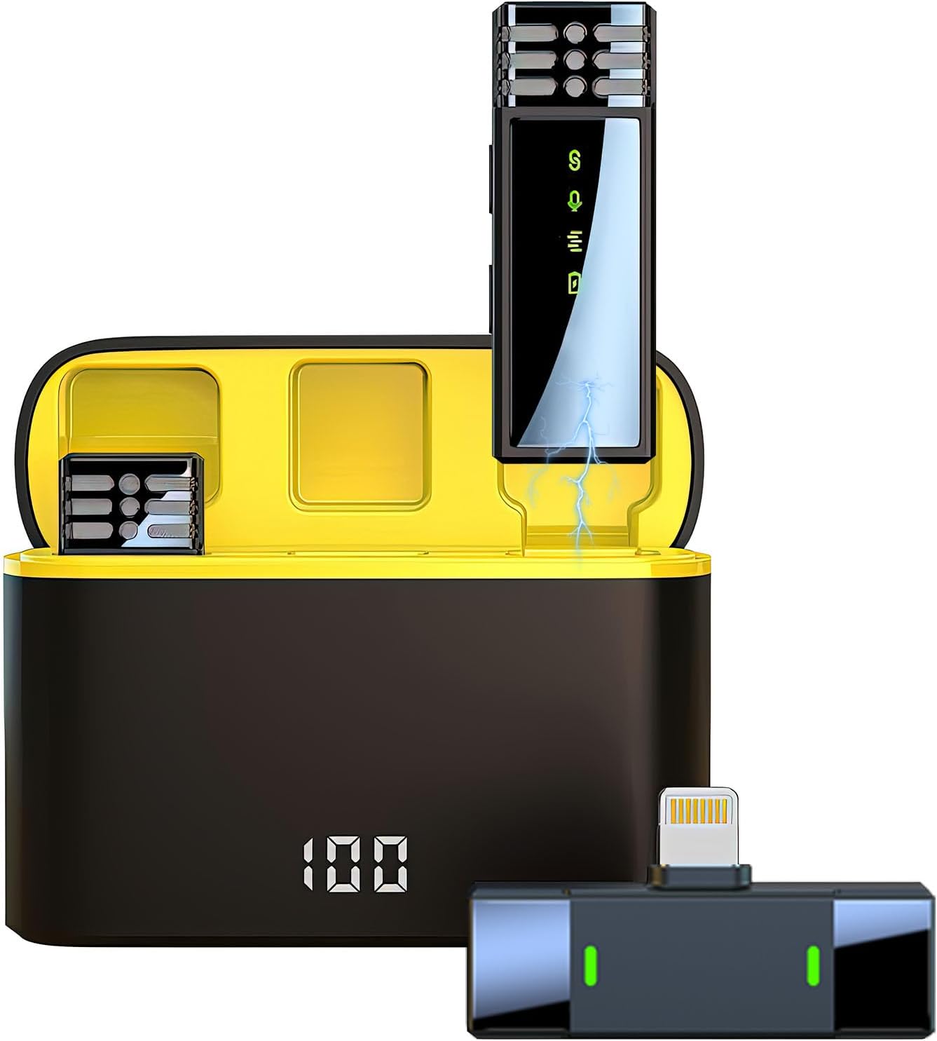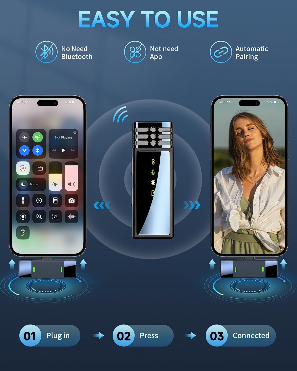 2 件裝專業無線領夾式麥克風適用於 iPhone iPad,即插即用 2.4G 超低延遲內置降噪芯片夾在領夾麥克風上用於視頻錄製採訪播客 Vlog YouTube