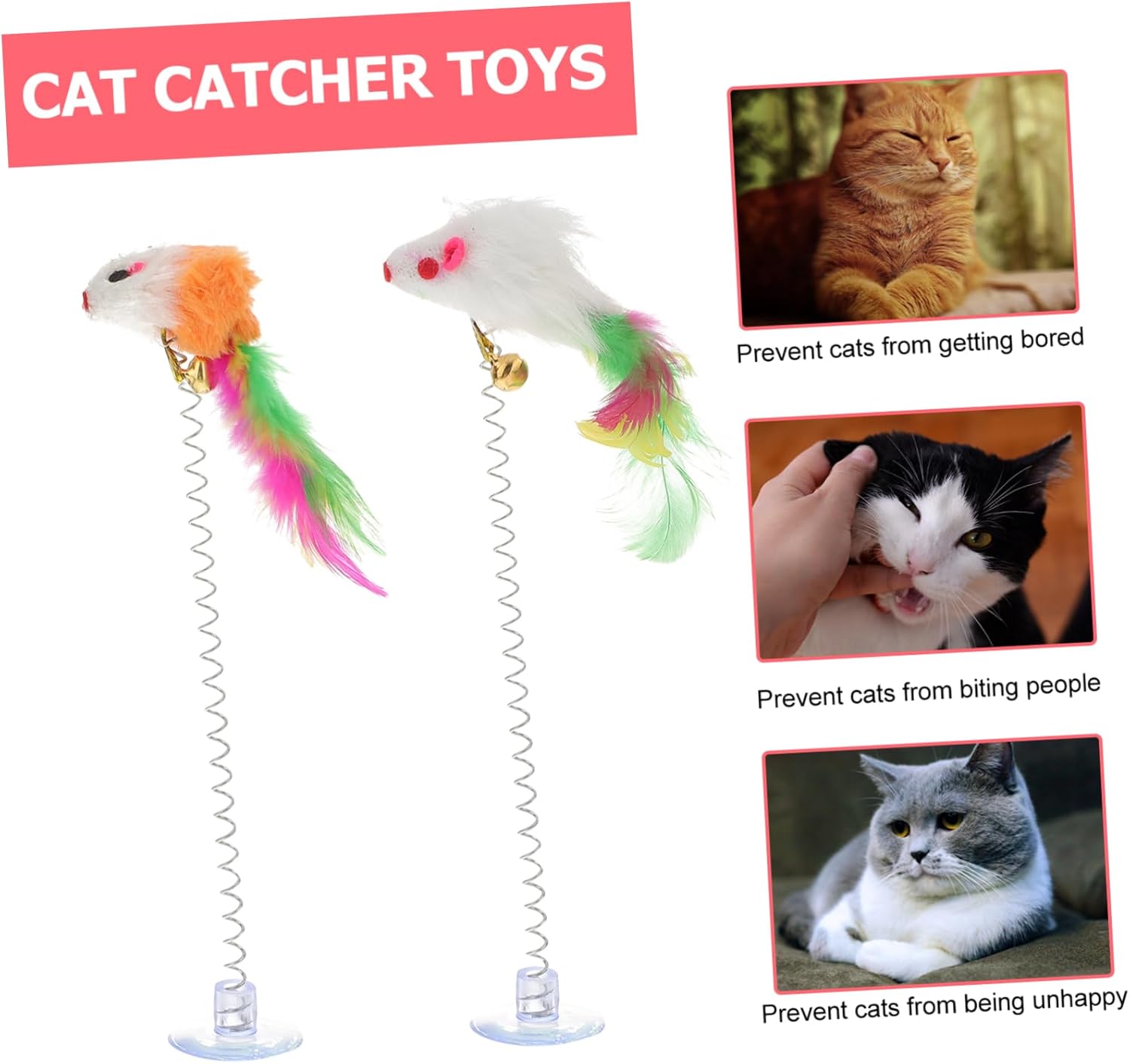 4 件裝羽毛吸盤滑鼠玩具寵物玩具互動滑鼠室內
