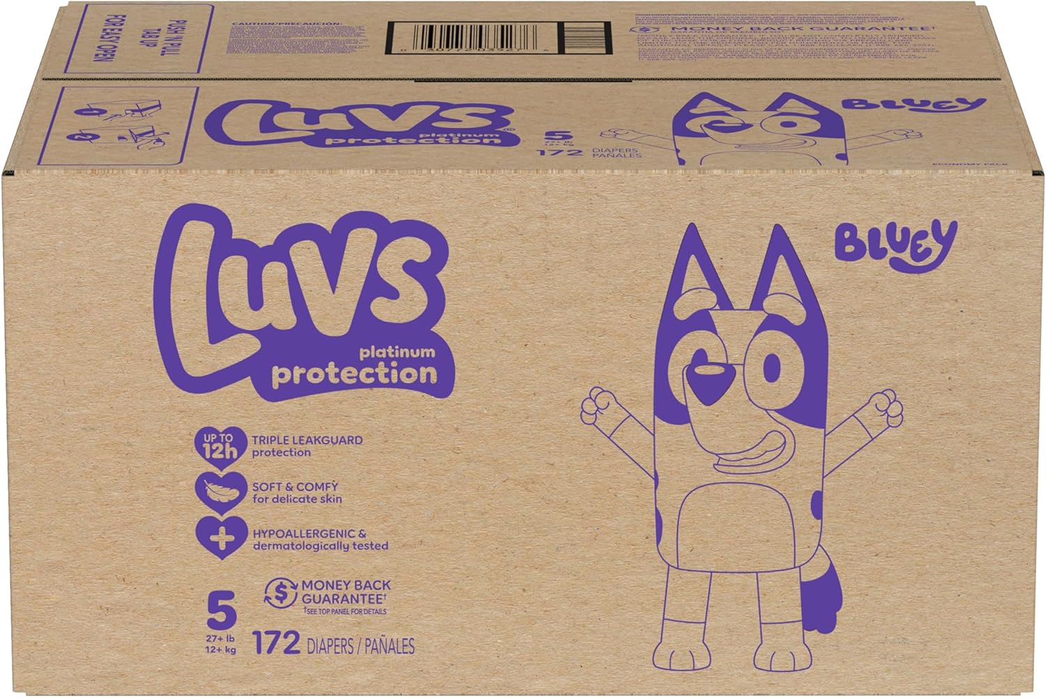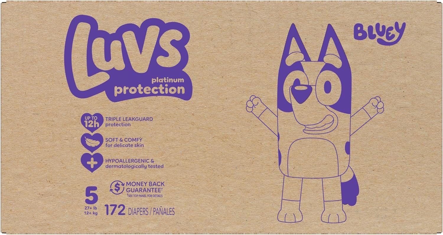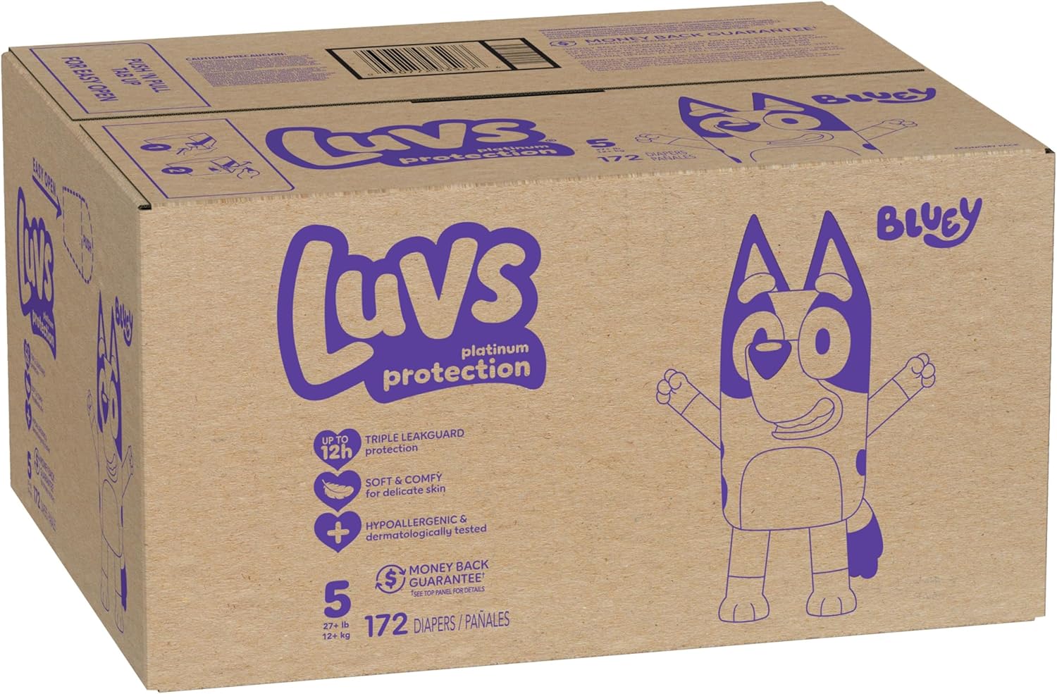 引入Luv鉑金保護藍色! LUVS旁路尿布現在比以往任何時候都更好,並且具有長達12個小時的三重效果保護保護。但是我們的洩漏保護並不止於此。安全的袖口和彈力的側面將它們看起來最大。新的LUVS鉑金保護是我們有史以來最柔軟的!感受柔軟度,為嬰兒的敏感皮膚帶來新的舒適度。父母可能會壓力很大。用無憂的luvs尿布進行保險,並在父母信任的保護下給您的寶寶帶來溫柔的舒適感。借助Luv的鉑金保護,您可以知道,沃特島隔熱材料在接觸濕度時變成藍色。認識我們新的最好的朋友Bluey。這些顯然有趣的圖案為每個尿布提供了適合您寶寶的額外的可愛基層。以下是亮點…四個保護級別:三重洩漏,濕,安全且彈性的頁面,舒適的洩漏障礙物最大柔軟度:柔軟且方便,適合您的嬰兒敏感皮膚。嬰兒很精緻,這不是一個謎,因此這些尿布笑聲,笑聲,低過敏性,沒有帕拉貝拉,祈禱和失誤,沒有旁皮和許多數量,這些尿佈在低過敏烯,對羥基苯甲酸酯,prudios and Prudios and Ordors上。通過我們的金錢保證來相信我們。我們認為您會問自己,如果沒有這些嬰兒尿布,您會如何見面,但是由於某些原因,您不喜歡Luvs,我們會給您寄來的報銷***。 *vs。基本的luvs **無天然橡膠。 ***如果您不完全滿意,請在購買後的45天內向我們發送原始文檔和UPC,以便通過預付費卡獲得完整的產品退款。限於每個家庭或名稱的贖回。