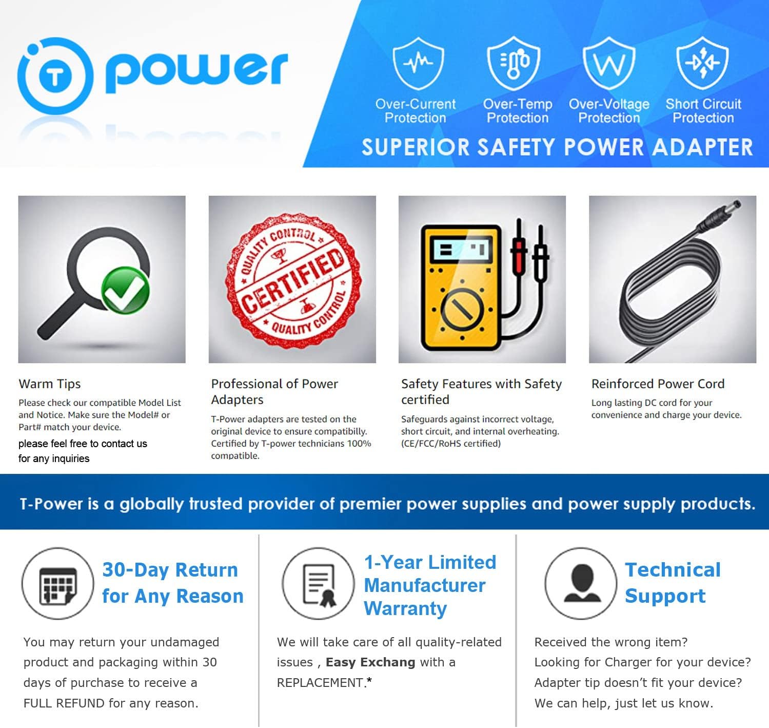 T-Power 9V 充電器適用於 Dunlop Crybaby 535Q Multi Wah ECB-003 ECB003 Cry Baby GCB-95 MXR Black Label Chorus、MXR Boost、LINEDRIVER VOX 吉他效果踏板以及 HQRP 杯墊供應