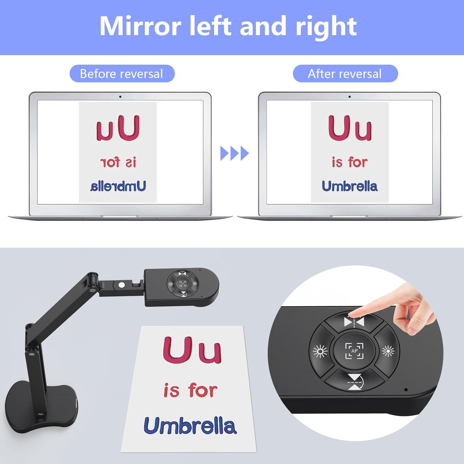 帶有30fps的8MP/2448P文檔攝像頭:它輸出超高定義的圖像和視頻實時傳輸,高達2448p兆像素。按下焦點按鈕一次自動將文檔攝像機聚焦一次。將物體在鏡頭下移動,相機將不是任意的自動焦點和圖像舞。宏可以將對象捕獲至3.94英寸