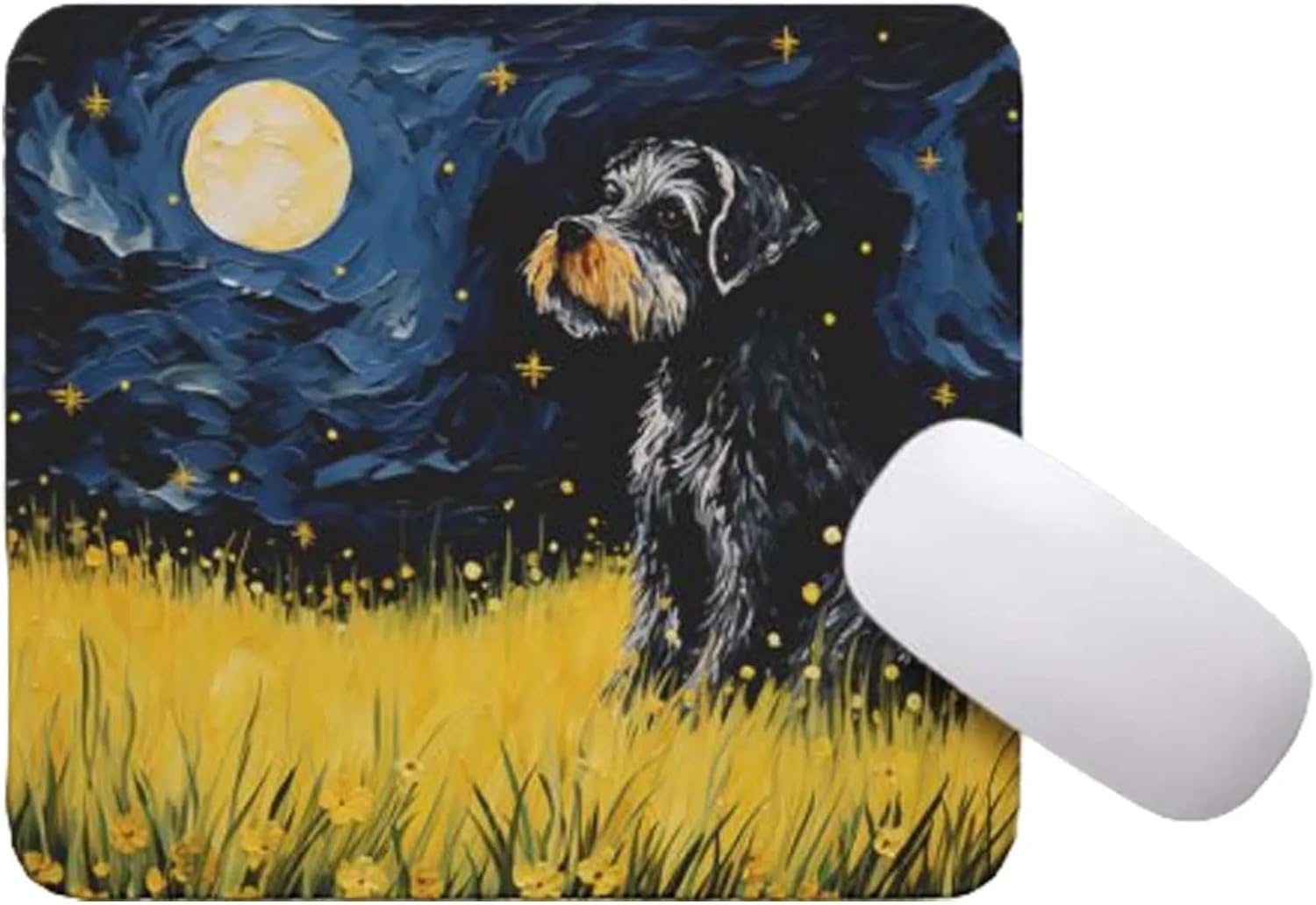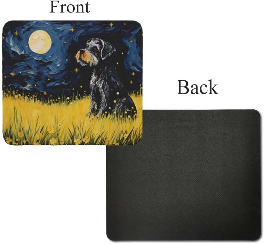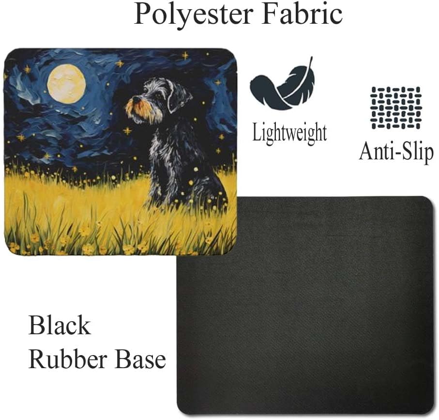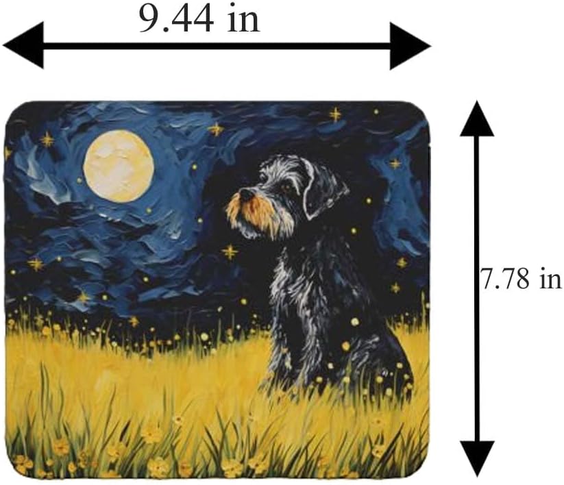 Tubbie Prints 星夜狗鼠標墊適用於電腦筆記本電腦家庭辦公遊戲桌桌面配件防滑橡膠鼠標墊適合愛狗人士(迷你雪納瑞)