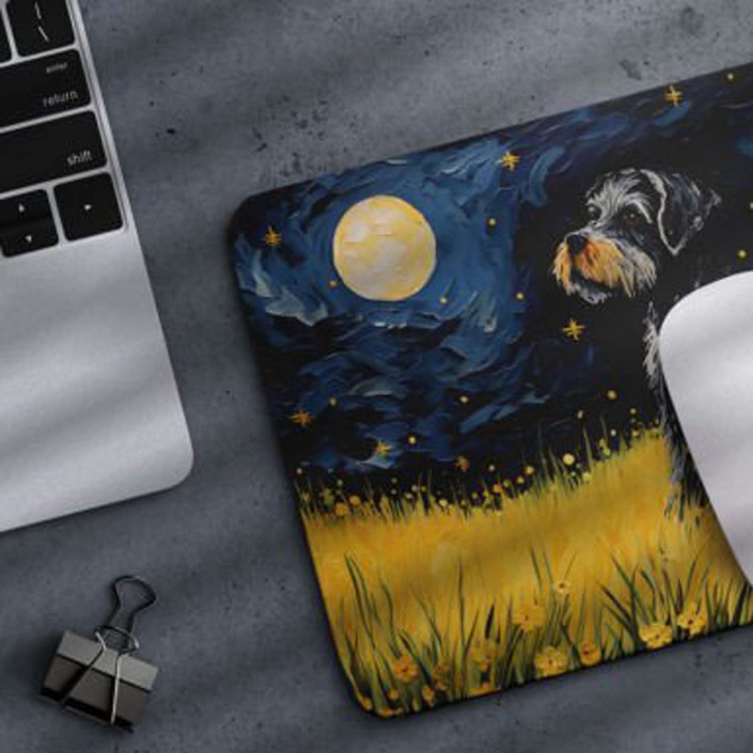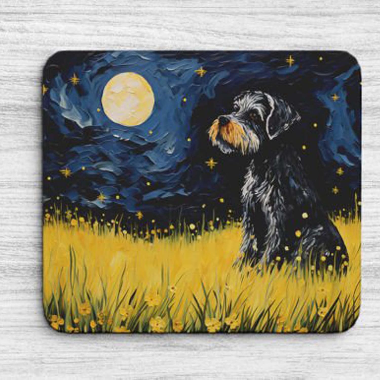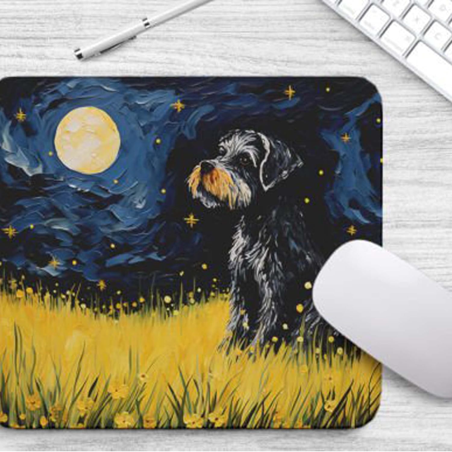 Tubbie Prints 星夜狗鼠標墊適用於電腦筆記本電腦家庭辦公遊戲桌桌面配件防滑橡膠鼠標墊適合愛狗人士(迷你雪納瑞)