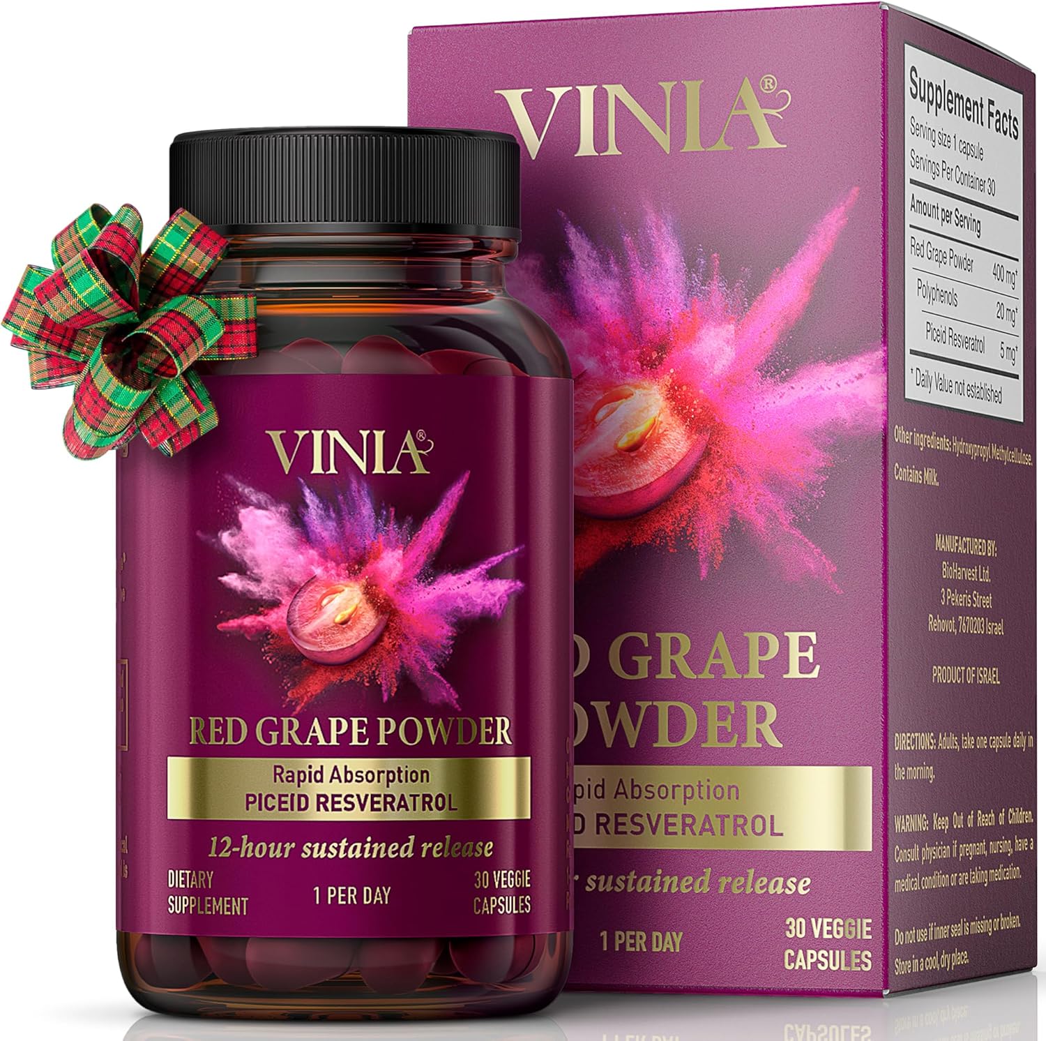 Be the first to review “VINIA Piceid 白藜蘆醇補充劑。增加血流量和一氧化氮。血壓和心臟健康支持|紅葡萄中的抗氧化劑 |非轉基因,30 片”