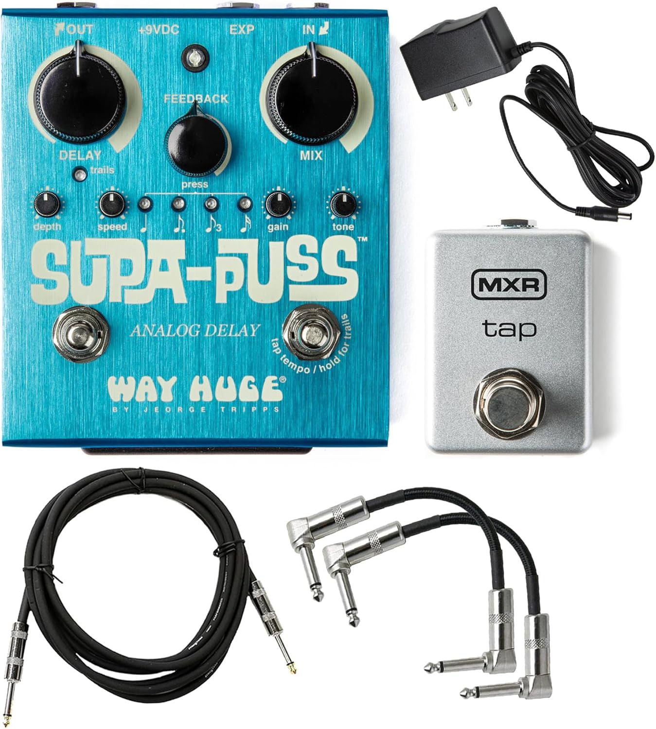 Way Huge WHE707 SUPA-PUSS 模擬延遲電吉他效果器混合控制,搭配 Tonebird MXR M199 Tap Tempo 開關套裝