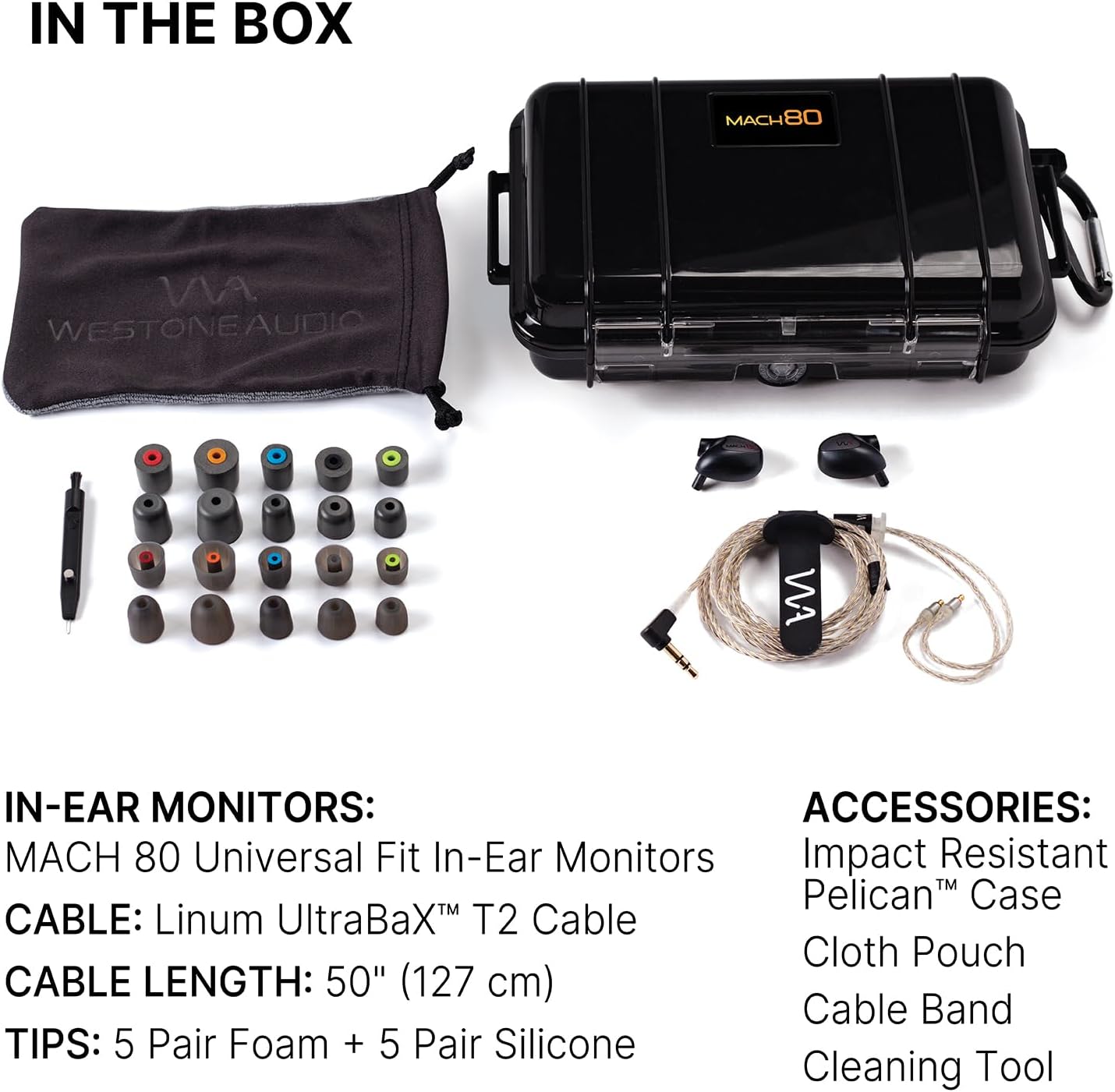 Westone Audio – Mach 80 通用 IEM 有線耳塞 – 8 平衡電樞專業音樂家入耳式監聽耳機,帶 Linum® ESTRON ULTRABaX™ T2 線纜